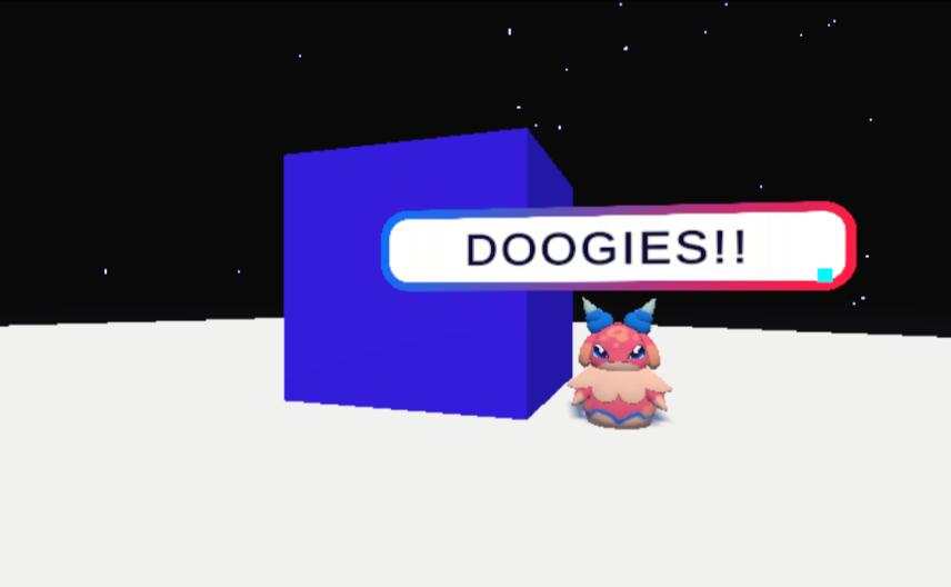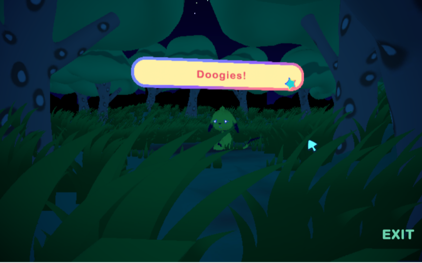 Currently I did animations for Yellow Dog and Doogies since they feature in scenes that are the closest to being complete. Doogies currently has the most animations: idle, walking, and running while Yellow Dog just has an idle and sitting pose. Not every character will have the same set of animations. Only what is they need in their respective scenes. As far as implementation goes Doogies is fully integrated into the first scene; replacing the dummy model that was there previously. Same with the shooting star scene and Yellow Dog! You will also see Princess Foams' model in the space scene and Prince Orbital in the final but they don't have any rigs or animations yet.